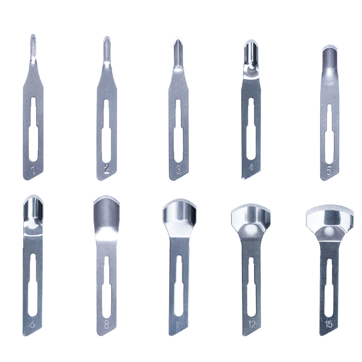 Χειρουργικές Λεπίδες. Προορίζονται για τοπικά προβληματικά σημεία των ποδιών . Οι λεπίδες κοίλης σμίλης αλλάζουν εύκολα, είναι ξεχωριστά συσκευασμένες και αποστειρωμένες και ανταποκρίνονται έτσι στις απαιτήσεις ενός σύγχρονου ιατρείου περιποίησης ποδιών. Υπάρχουν διαθέσιμες διαφορετικές λεπίδες κοίλης σμίλης ανάλογα με το πρόβλημα που υπάρχει. Επιλέξτε τον αριθμό για τον τύπο λεπίδας που επιθυμείτε. ( 1-12)